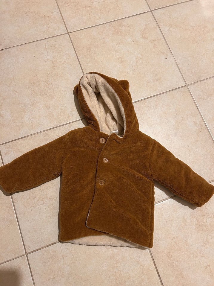 Kahverengi Erkek Çocuk Peluş Kapüşonlu Mont