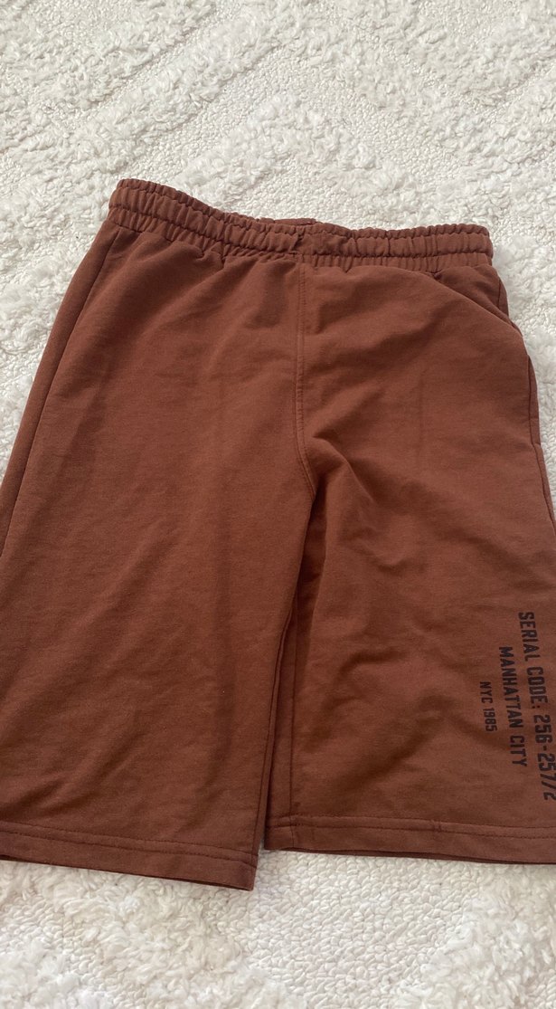 Kahverengi, rahat kesim erkek çocuk pantolonu, yumuşak ve sıcak kumaştan. Düz tasarımlı, lastikli bel bandı bulunur. Üzerinde "SERIALCODE256-25/ MANHATTAN CITY" yazısı var.