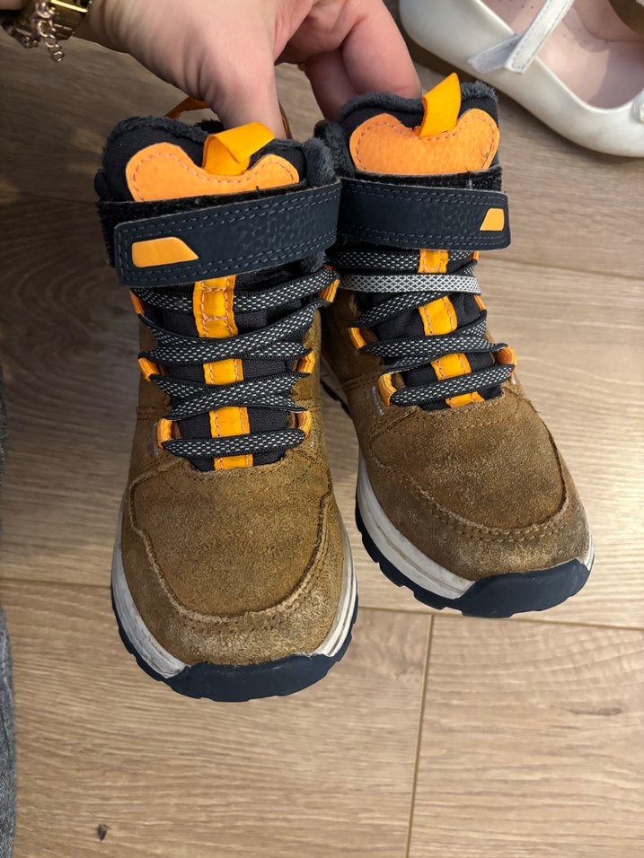 Koyu kahverengi süet görünümlü, kauçuk tabanlı ve cırt cırtlı erkek çocuk spor botları. Kart botudur gayet temiz ve sorunsuzdur