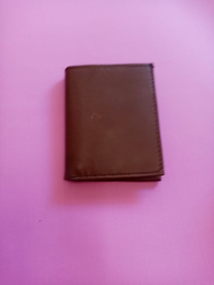 Kahverengi, minimalist tasarımlı erkek cüzdanı, düz yüzeyli ve sade bir stile sahip.