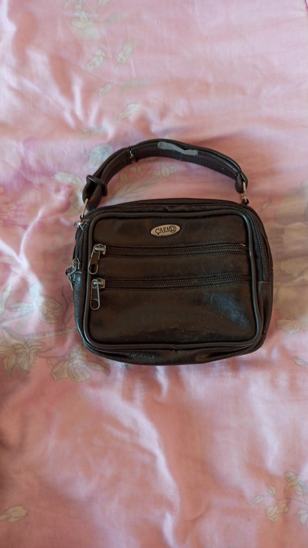 Kahverengi erkek el çantası, tokalı kayışları ve çoklu fermuarlı bölmeleriyle. Minimalist ve gotik tarzda, desensiz tasarım.