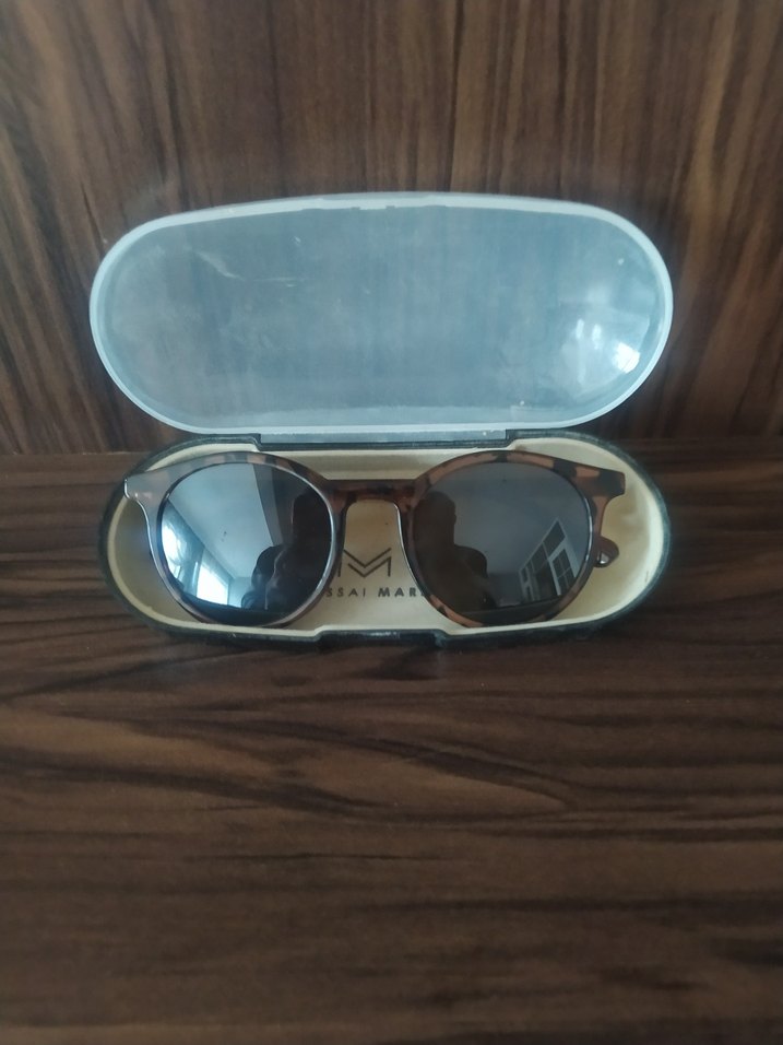 Koyu kahverengi, tokalı detaylı, minimalist bohem tarzda erkek güneş gözlüğü. Koruyucu kutusunda.markasiz gözlük kutusu kendinin değil kutu massai Mara marka