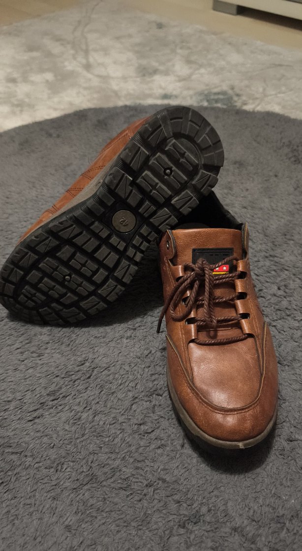 Koyu kahverengi bağcıklara sahip erkek günlük ayakkabılar, sokak giyimi tarzında ve rahat iç astarlı.