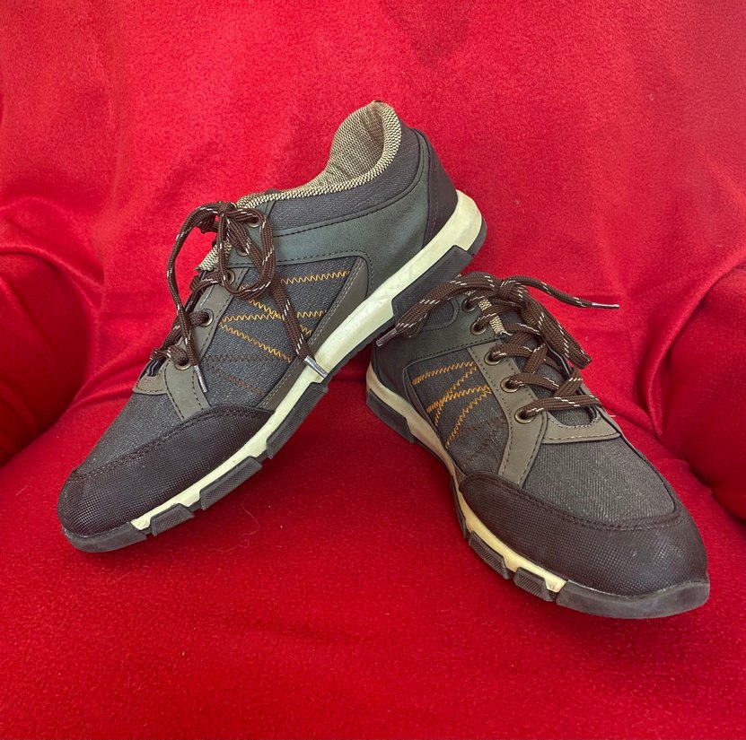 Gri ve kahverengi tonlarda, bağcıklı ve kauçuk tabanlı erkek spor ayakkabısı, günlük kullanıma uygun sokak stili ayakkabı. Kahverengi 42 numara.