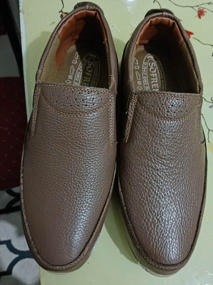 Kahverengi, tokalı erkek klasik ayakkabılar. Dayanıklı kauçuk malzemeden üretilmiş, iş ve gündelik kullanım için uygun, desensiz rahat tasarım.