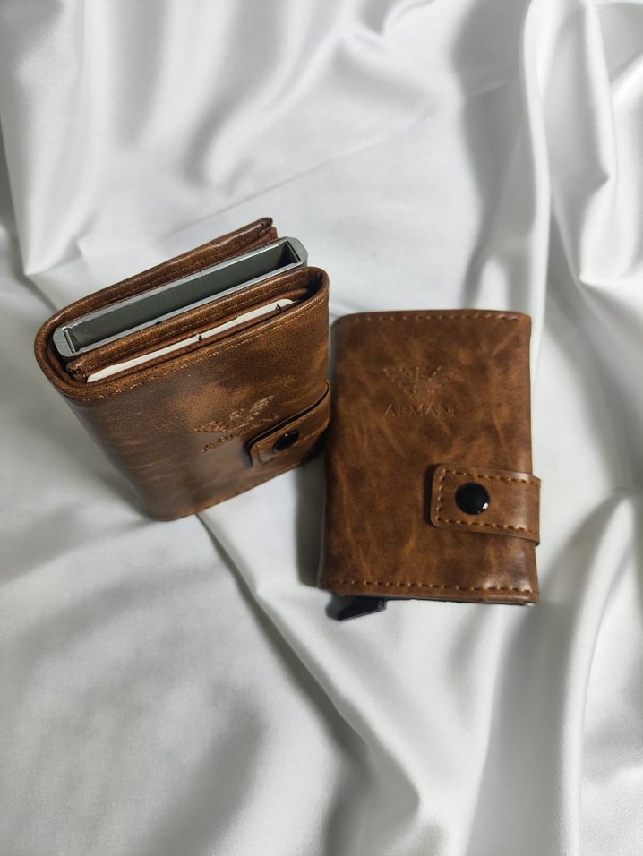 Kahverengi deri erkek cüzdanı, minimalist biker tarzı ve güvenli çıtçıtlı kapanışı ile sade bir görünüme sahiptir.