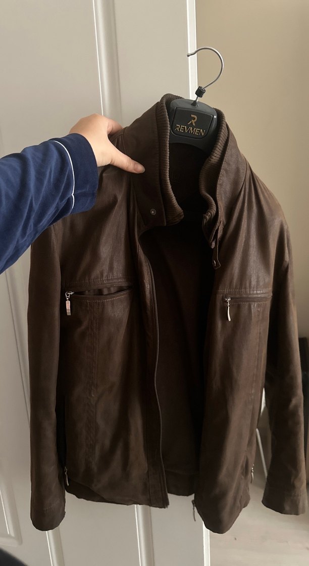 Kahverengi erkek mont. L beden. Hasar yoktur.1-2 kez giyildi