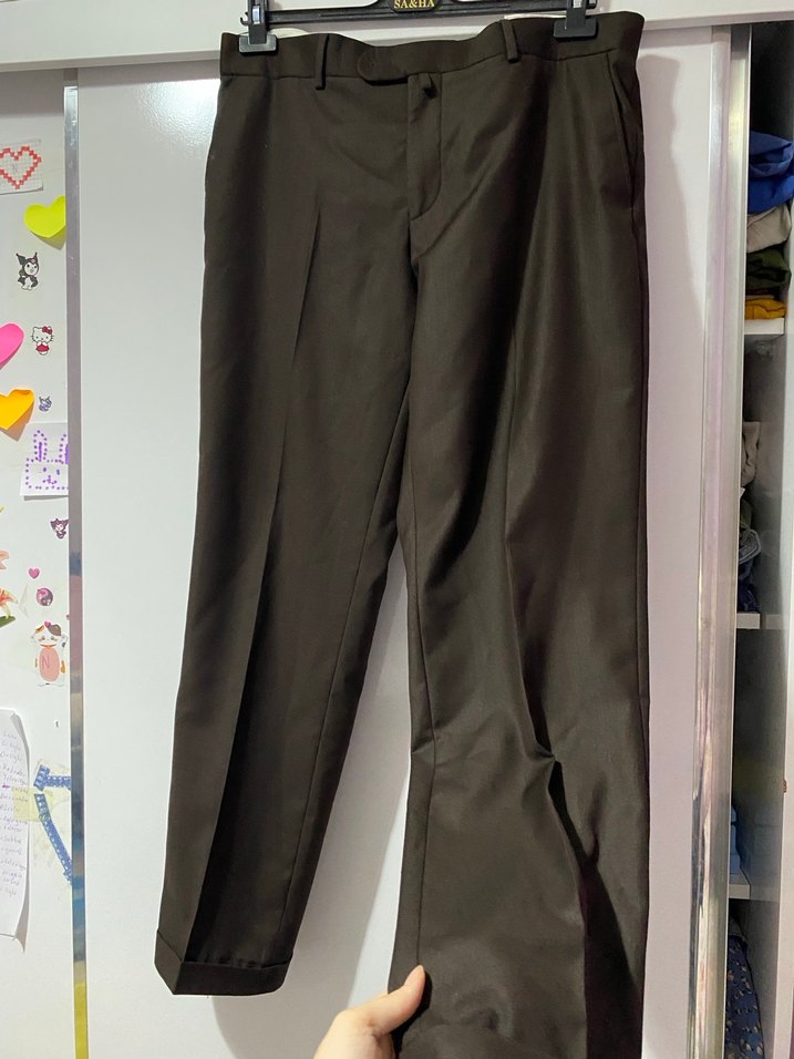 Kahverengi, pilili ve normal boyda, yumuşak dokulu erkek pantolon. Ofis için uygun, normcore tarzda. ✨ 49 cm beli 101 cm boyu