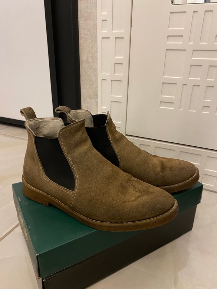 Kahverengi erkek sokak stili bot, desen içermeyen rahat ve şık tasarım.