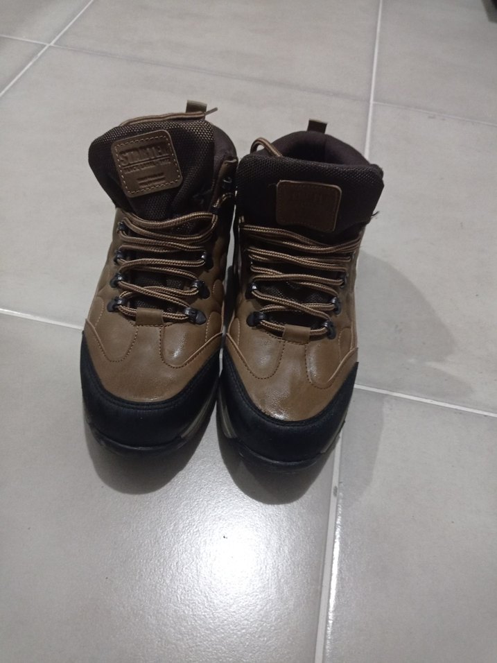Koyu kahverengi kauçuk malzemeden yapılmış, tokalı erkek botları. Sokak giyimine ve günlük kullanıma uygun, rahat ve şık görünümlü.