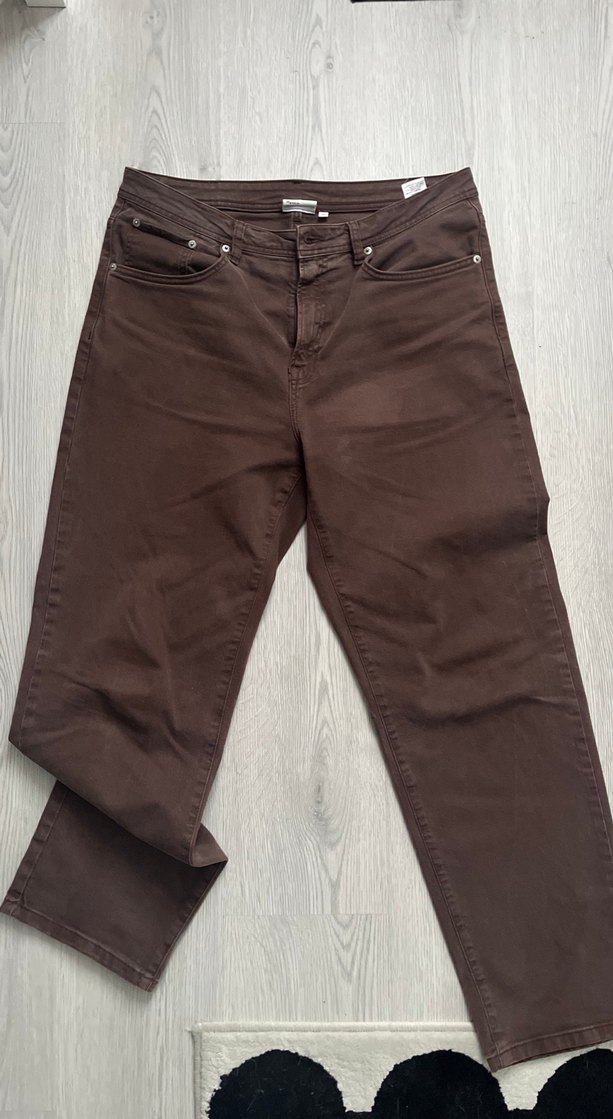 Kahverengi süet kumaştan, normal boy midi uzunluğunda, rahat kesimli pantolon. Günlük kullanıma uygun, şık ve sade tarzda. Orijinal Yôke pantolon.
