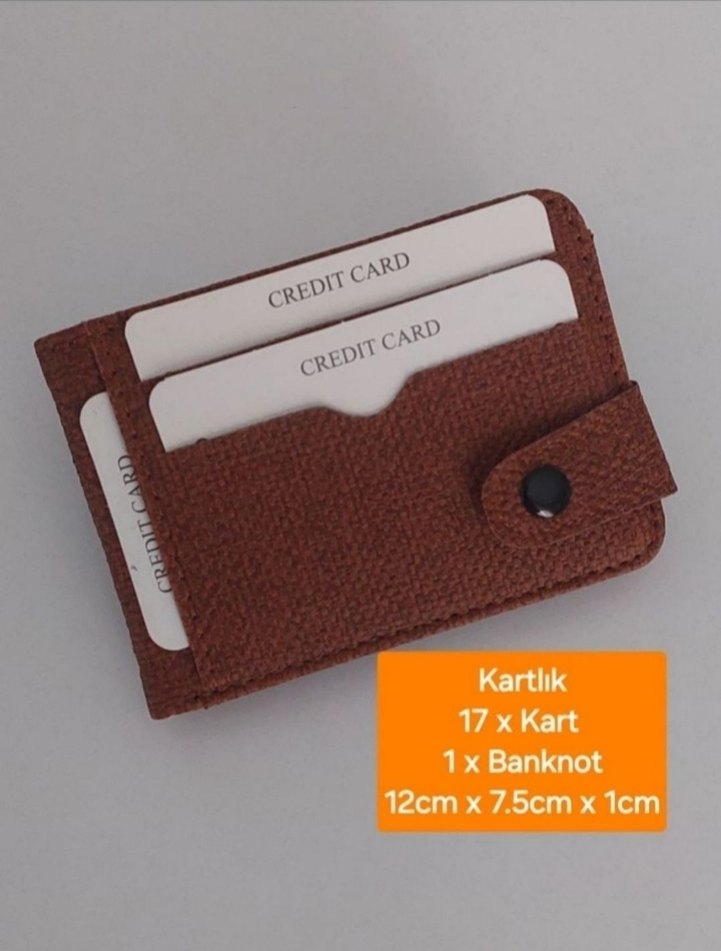 Kahverengi erkek suni deri cüzdan, 17 karta ve 1 banknota kadar kapasiteye sahip, 12x7.5x1 cm ölçülerinde, basit ve kullanışlı tasarım.