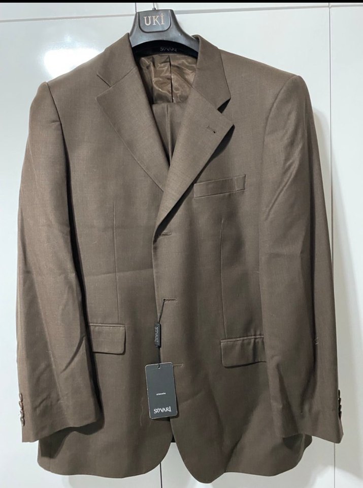Kahverengi erkek takım elbise, düğmeli ön, uzun kollu ve klasik kesimdir. Modern klasik tarzda, iş ortamı için uygundur. Desensiz ve zarif bir görünüme sahiptir. ️