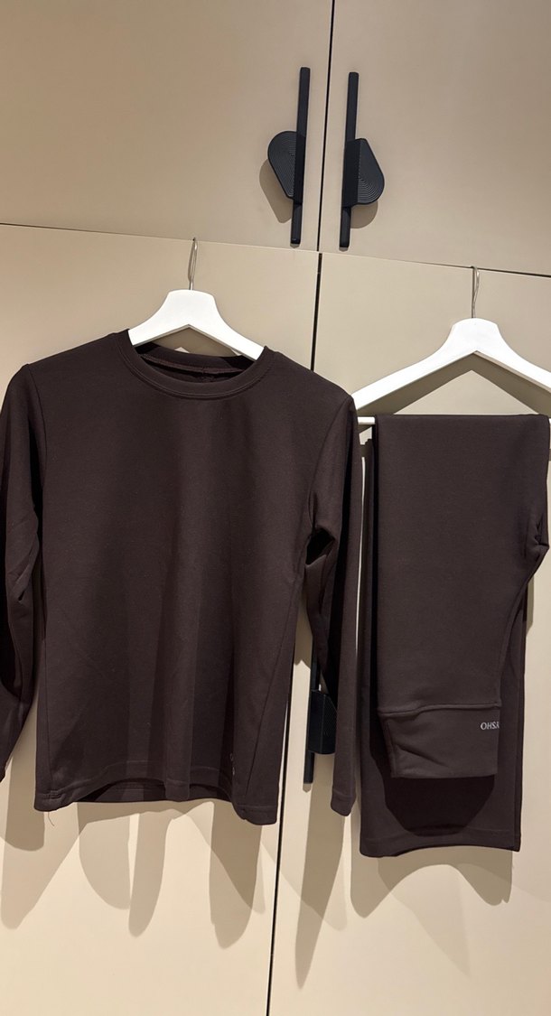 bisiklet yaka ve uzun kollu olup, normal kesimdedir. Düz, koyu kahverengi renkte ve midi boyda, sade ve temel bir tarz sunar.oysho kumaş