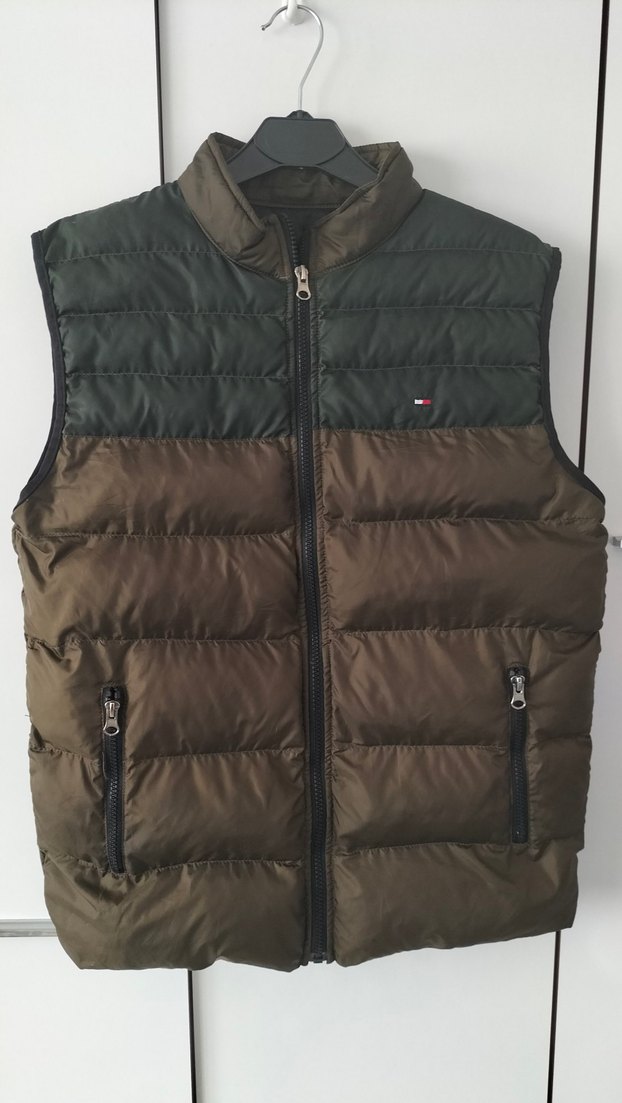 Kahverengi , yüksek yakalı ve fermuarlı cepli erkek yelek. İnce kesimli, gündelik sokak tarzına uygun. Arka alt kısımda yağ lekeleri var leke çıkarıcıyla çıkar ben denemedim fiyat bu yüzden uygun