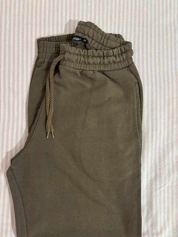 Kadınlar için rahat kumaştan, kahverengi tonunda, lastikli ve ip detaylı bel kısmına sahip loose fit eşofman. Günlük kullanım ve sokak stili için uygun. ️