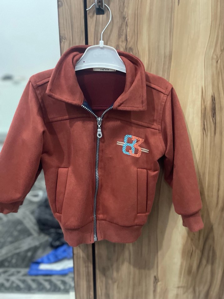 Kahverengi polar kumaştan, fermuarlı ve kesimli erkek çocuk ceketi. Notch yaka ve baskılı detaylarla sokak stiline uygun. İnce kumaş