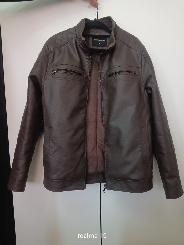 Kahverengi deri biker ceket, kesik yaka ve fermuarlı ceplere sahiptir. Normal kesim, uzun kollu ve midi boydadır, günlük kullanım için uygundur. Ürün iki kere kullanılmış, lcw marka, sıfır gibi hiç sorun yok. Mevsimlik değildir, kışlık ceket, içi astarlı kürklü, sıcak tutar.