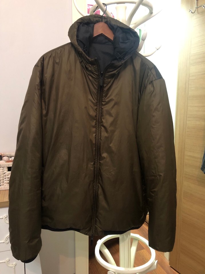Fermuarlı, yüksek yakalı, kahverengi ve yumuşak dokulu kumaştan yapılmış, dar kesim erkek kaban. Uzun kollu ve midi boyda, günlük sokak stili için uygundur.