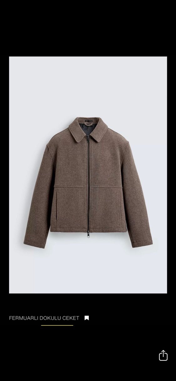 Kahverengi yün kumaştan, fermuarlı, regular fit erkek ceket.uzun kollu, günlük kullanıma uygun midi boyda minimal tasarım.