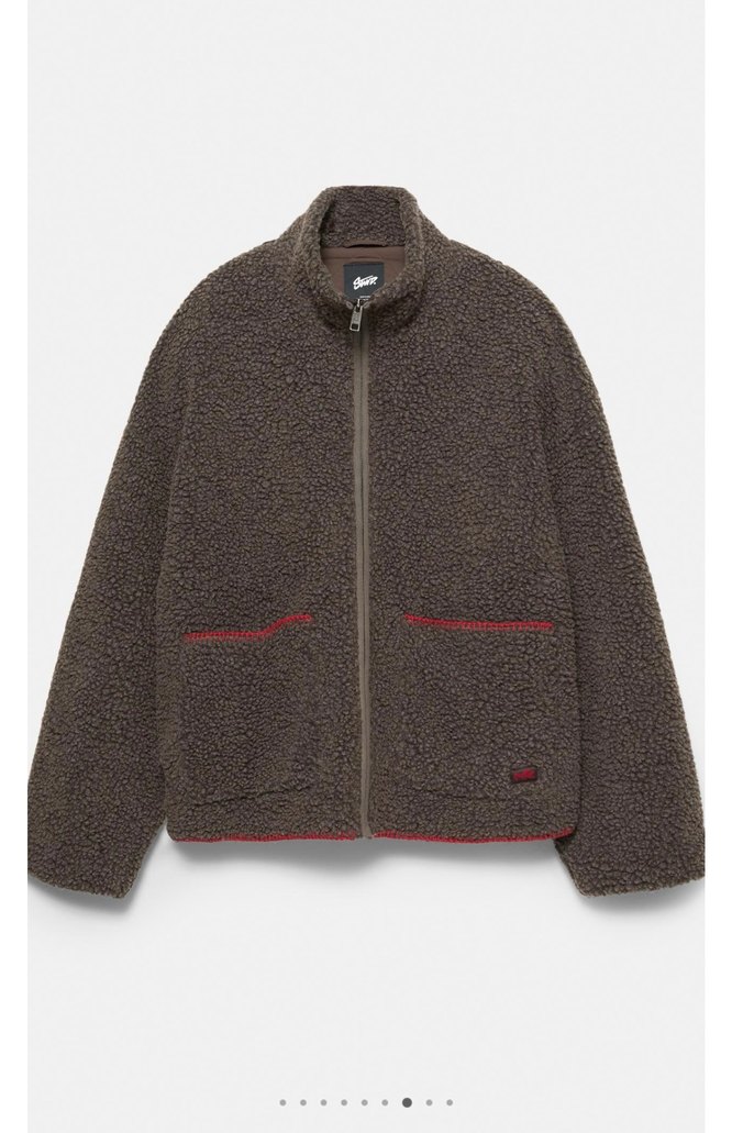 Kahverengi fermuarlı ceket, uzun kollu ve yuvarlak yakalıdır. Yumuşak, rahat dokusu ve bol kesimiyle günlük kullanıma uygundur.