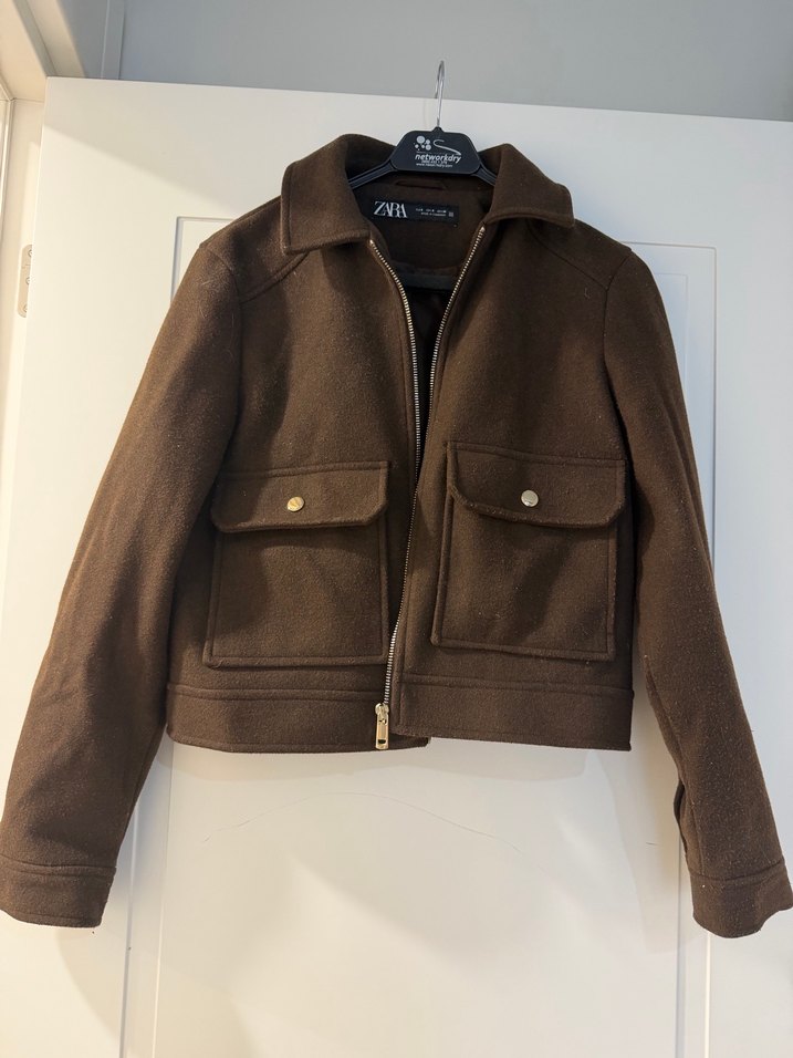 Fermuarlı önü ve yakası bulunan, yumuşak ve sıcak kumaştan yapılmış kahverengi, dar kesim kaban. Uzun kollu, cep kapaklı ve normal midi boyda minimalist sokak tarzı sunar. Günlük kullanıma uygundur.