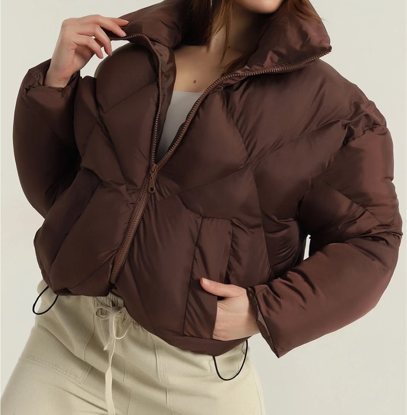 Kahverengi Fermuarlı Kadın Kışlık Mont