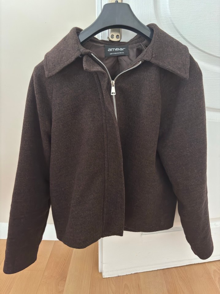 Standart beden 42ye kadar olur 2 3kere giyildi temizdir Kahverengi fermuarlı kadın ceket, yumuşak ve sıcak kumaştan, notlu yakalı, uzun kollu ve midi boyda. Günlük kullanıma uygun rahat bir sokak tarzı. amear marka.