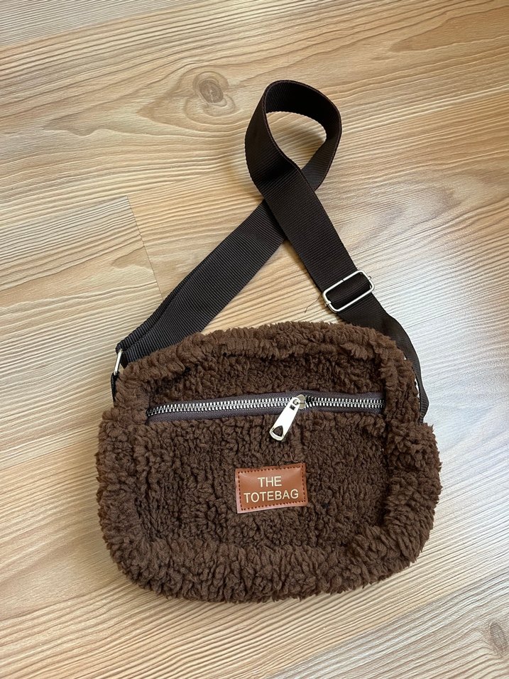Koyu kahverengi, yumuşak ve rahat kumaştan kadın omuz çantasıdır. Önünde fermuarlı cep ve 'THE TOTEBAG' etiketi bulunur. Ayarlanabilir askılıdır. Hiç kullanılmamıştır sıfırdır. Markası temsilidir.