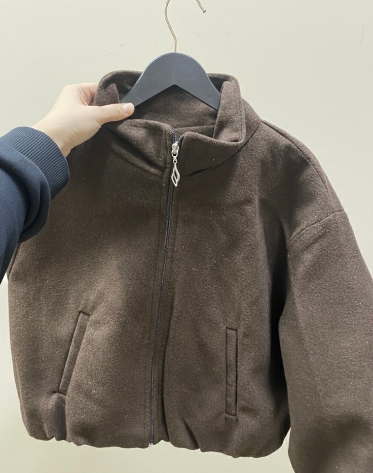 Kahverengi polar ceket, yüksek yakalı ve fermuarlı. Salaş kesim, uzun kollu ve midi boyda, günlük kullanım için uygun, desensiz ve sade tasarım.