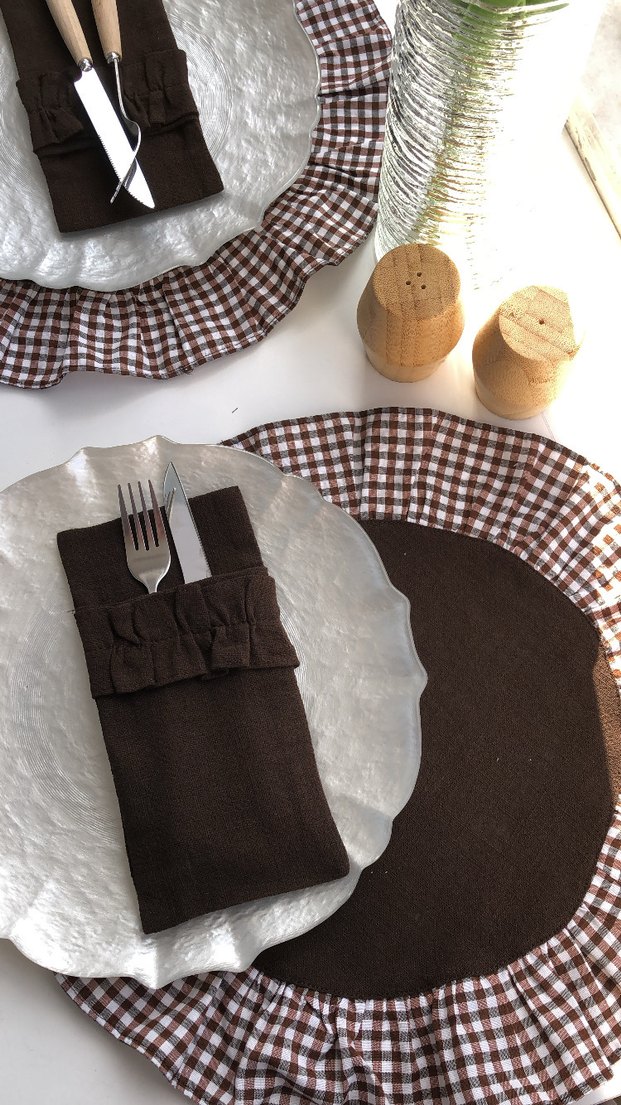 Kahverengi Fırfırlı Çatal Bıçak Kılıfı
