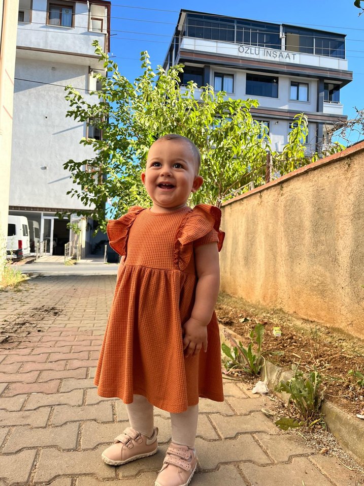 Kahverengi Fırfırlı Kız Çocuk Elbise - Görsel 1