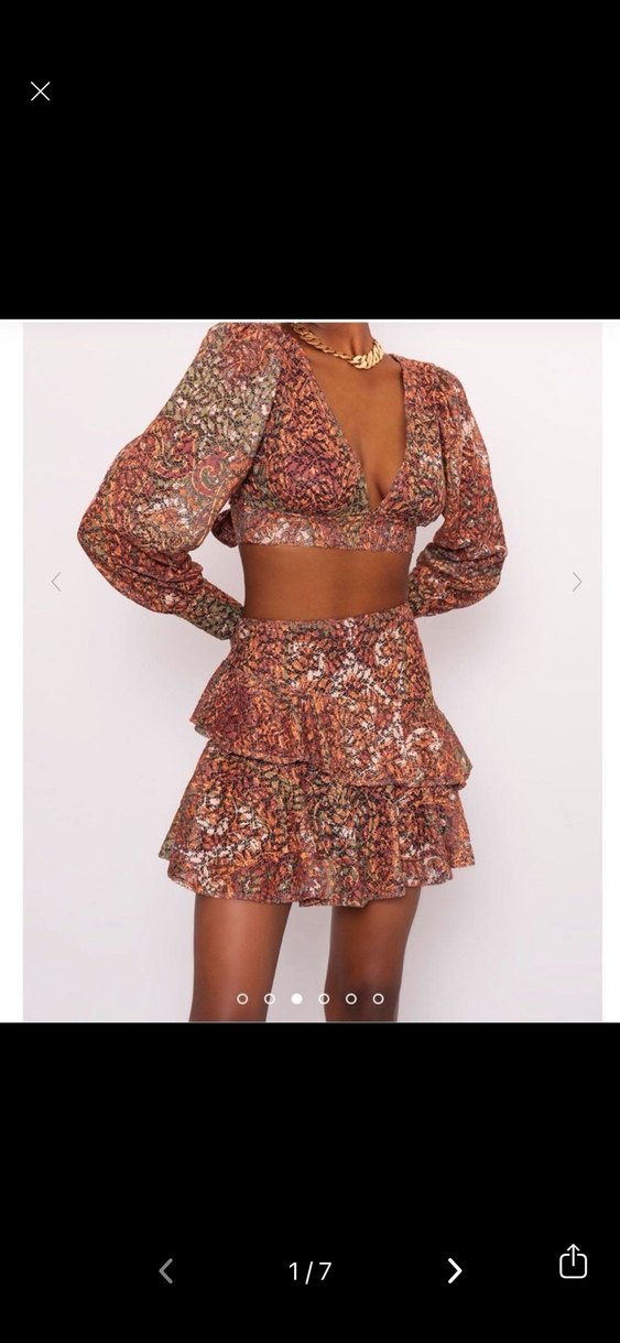 Kahverengi Fırfırlı Mini Bohem Etek