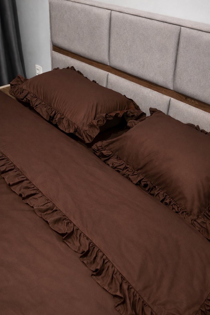 Kahverengi Fırfırlı Yatak Örtüsü Seti,sipariş üzerine dikilir