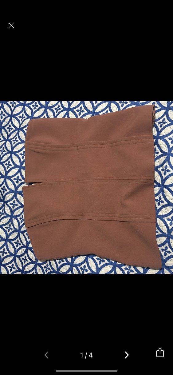 Kahverengi, desen içermeyen, midi boyda ve vücuda oturan fitilli bir korsesidir.