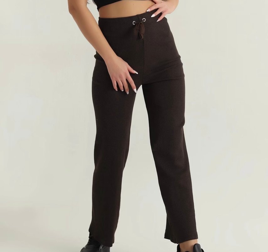 Kahverengi Fitilli Likralı tayt eşofman