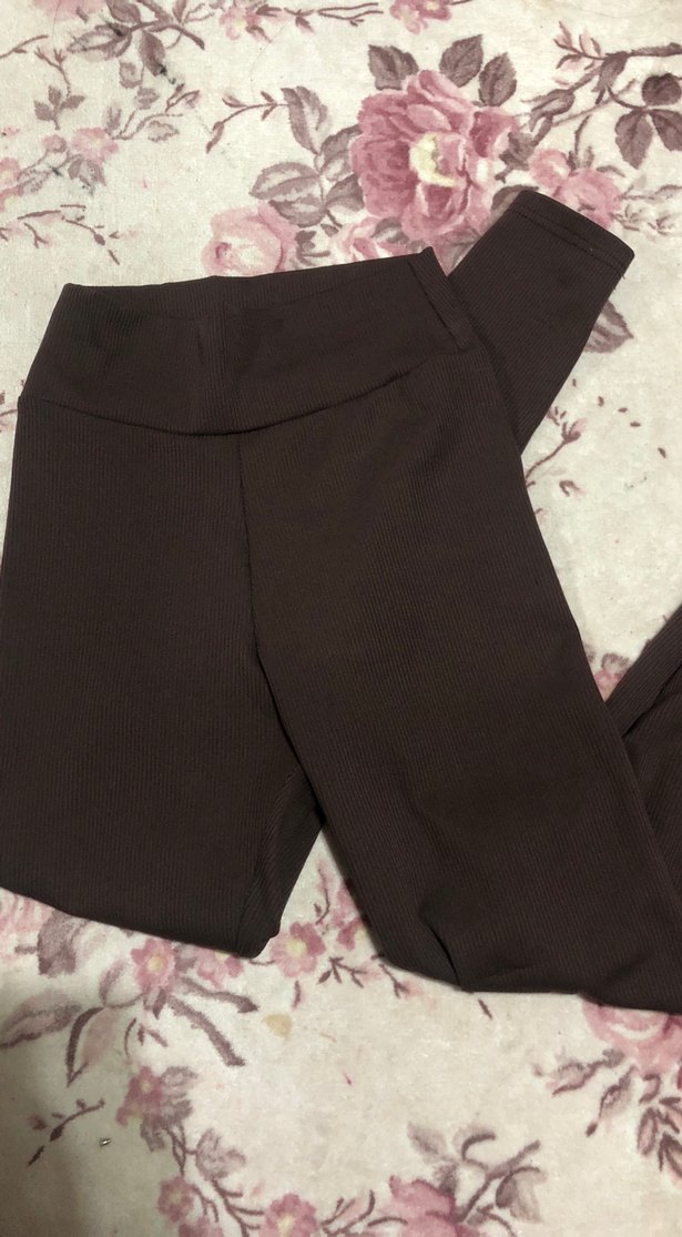 Kahverengi, midi uzunlukta, sentetik kumaştan yapılmış, rahat ve sokak stiline uygun kadın tayt.