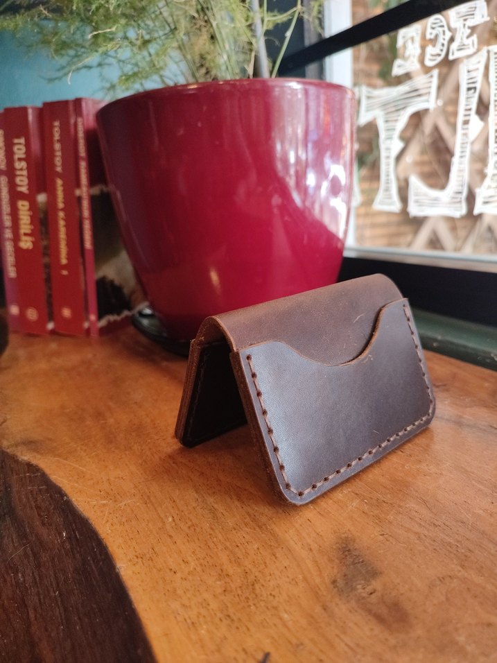 Kahverengi Gerçek Deri El Yapımı Vintage Cüzdan / Kartlık