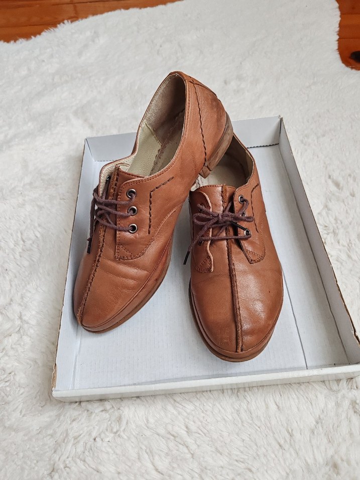 Kahverengi Gerçek deri kadın klasik ayakkabılar, 37 numara, tam kalıp, desen içermeyen sade tasarıma sahiptir. Dikiş detayları ile minimal bir hava katılmış. Günlük kullanıma uygundur. Az kullanılmıştır.