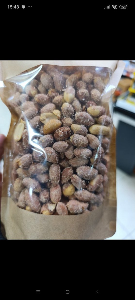 İçindekilerin görünmesini sağlayan şeffaf ön yüzeyli koyu kahverengi gıda saklama poşeti.