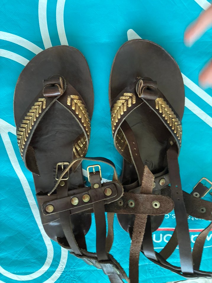 Kahverengi Gold Hakiki Deri Kısa Gladyatör Sandalet (Handmade)