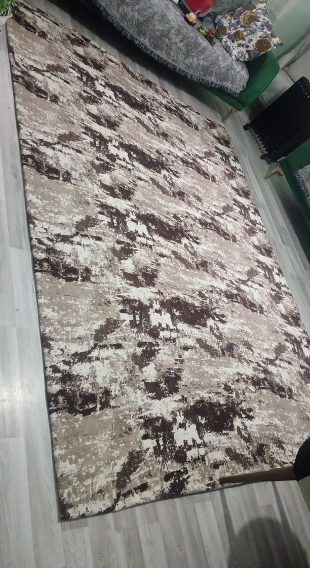 Bu modern halı, kahverengi ve gri tonlarında kamuflaj desenine sahip olup mekana hafif dokulu bir görünüm katıyor. 2adet satilik