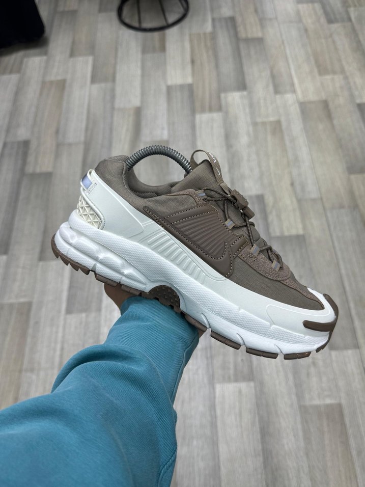 Kahverengi ve gri tonlarda, bağcıklı tasarıma sahip platform topuklu spor ayakkabılar. Lastik tabanlı, baskılı desenli, spor ve sokak tarzı için uygun.