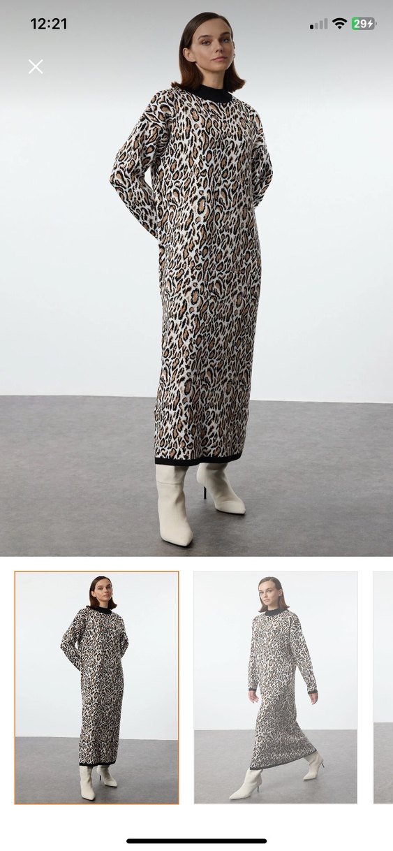 Kahverengi Gri Zebra Desenli Kadın Uzun triko elbise