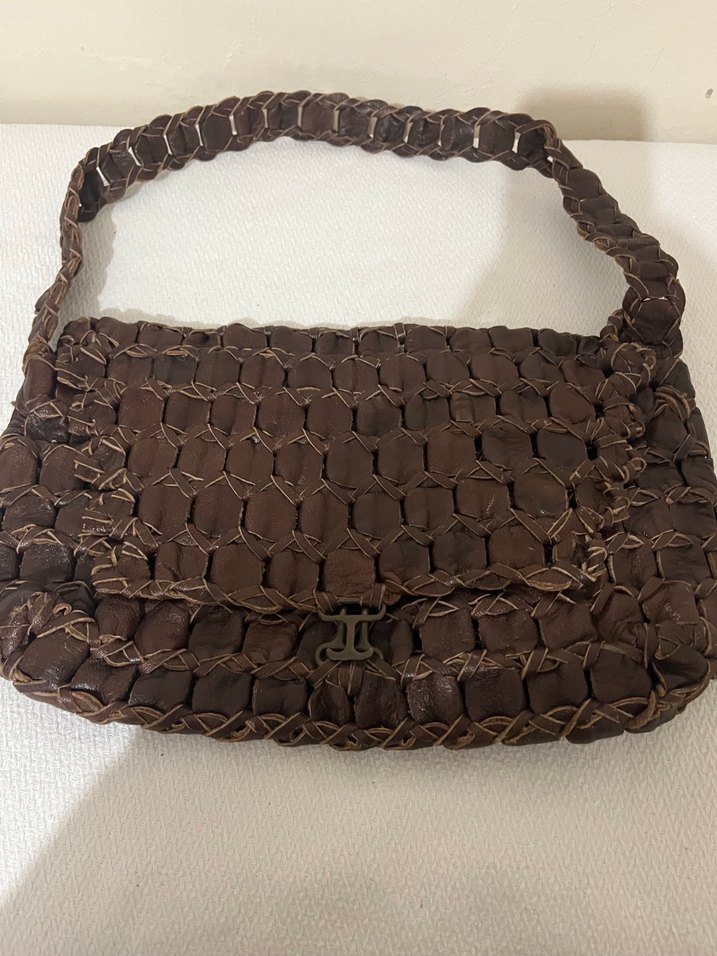Kahverengi hakiki Deri el yapımı Yılan Desenli Kadın Çanta