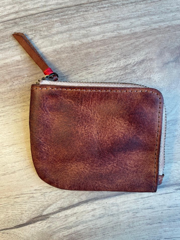 Kahverengi hakiki deri, fermuarlı vintage cüzdan, sade ve desen içermeyen tasarımıyla günlük kullanıma uygundur.