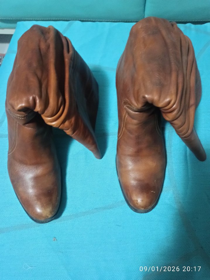 Kahverengi deri,rahat giyilir, cok rahat topuk, ici miflonlu,. Günlük, gece her tur kullanima uygun vintage tarzda,temizdir, resimde bazi yerleri koyu gibi ama defo degil, hakiki deri oldugu icin