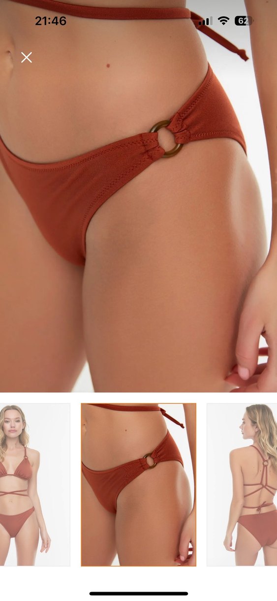 Bu kahverengi bikini altı, halka detaylı ince askıları ve sıkı kesimiyle modern, minimalist bir plaj şıklığı sunar . Hem 34 hem 36 beden mevcut sayılı kullanıldı