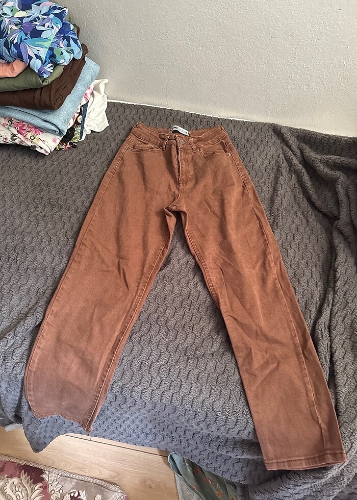 Butikten almıştım 34 beden kahverengi havuç pantolonla likralı kusuru yok