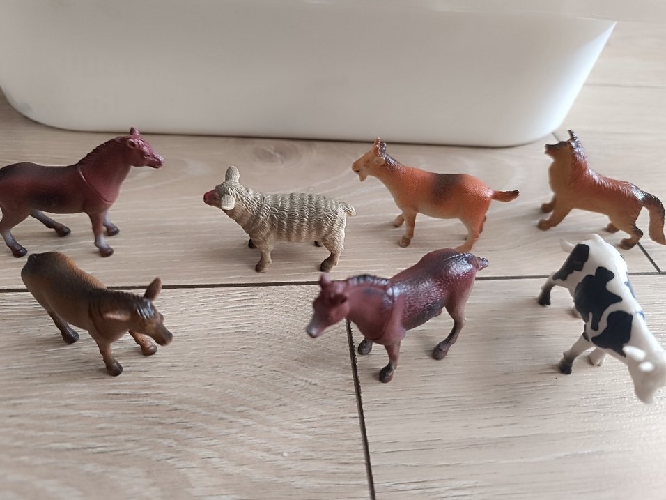 Kahverengi tonlarda koyun, keçi ve eşek figürlerinden oluşan detaylı hayvan figürleri seti. Her figür gerçekçi şekillerde tasarlanmıştır.